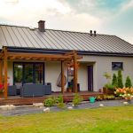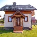 Nowoczesny dom z bali z poddaszem użytkowym i garażem jednostanowiskowym.
