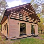 Niewielki dom szkieletowy z poddaszem użytkowym.
