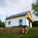 Dom szkieletowy w typie nowoczesnej stodoły z poddaszem użytkowym i garażem